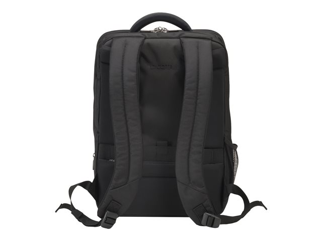Avec l'Eco Backpack PRO, vous êtes un voyageur de " première classe ". Le sac à dos vous accompagne partout et correspond aux exigences élevées en termes de qualité, fonctionnalité et de protection. L'amour du détail de DICOTA fait de ce sac votre partenaire le plus fiable. La séparation du système fit-all dans le compartiment ordinateur recouvre votre ordinateur, le protège et s'adapte automatiquement aux tailles 12-14,1". La mousse légère en EVA perforée placée dans le compartiment verrouillable de l'ordinateur, protège parfaitement les angles de votre appareil. La tenue optimale pour votre ordinateur portable dans le compartiment est garantie par le revêtement antiglisse. Protection idéale pour votre tablette de taille 12,9"dans le compartiment formé en EVA avec doublure extra douce en Nylex. Espace de rangement généreux pour une imprimante, un projecteur et des documents dans le compartiment extensible. La poche frontale avec porte-clés et compartiments de rangement organise vos ustensiles personnels et offre de la place pour d'autres accessoires mobiles. Le rembourrage ergonomique du dossier, les sangles réglables en longueur, la poignée confortable et la lanière de fixation garantissent un confort de port optimal. La poche zippée cachée convient pour le passeport, le portefeuille, etc. Le fond de la sacoche est en matière étanche. Cela fait de l'Eco Backpack PRO le sac à dos parfait pour tous ceux qui se déplacent souvent et qui souhaitent soutenir la réutilisation raisonnable des bouteilles en PET grâce à une solution de transport écologique.