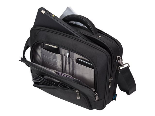 Ne prenez pas de risques et choisissez Multi Pro! La sacoche Clamshell vous accompagne partout et répond à vos exigences élevées en termes de qualité, de fonctionnalité et de protection. Le système fit-all convient aux ordinateurs portables de toutes les tailles. Le matelassage résistant et le cadre renforcé offrent une excellente protection 360° pour votre dispositif, et vous serez séduit par des fonctions intelligentes qui vous accompagneront au quotidien.