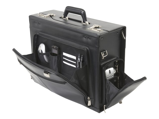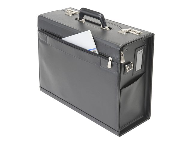 AeroCase de DICOTA est le compagnon idéal de vos déplacements pour transporter votre ordinateur portable, votre imprimante ou votre projecteur et leurs accessoires et vos documents indispensables. Proposée en simili-cuir particulièrement solide, cette mallette possède une poignée intégrée et un cadre renforcé. Le compartiment pour ordinateur portable rembourré est également recouvert sur le dessus pour protéger les fiches de l'appareil. L'imprimante, le projecteur ou un classeur de format A4 trouvent place dans le grand compartiment principal et des soufflets en accordéon peuvent accueillir tous vos documents. La pochette zippée verrouillable permet de ranger vos accessoires. Une pochette séparée est prévue pour les câbles. Les serrures à combinaison à chiffres offrent une sécurité supplémentaire, très appréciable en déplacement.