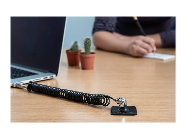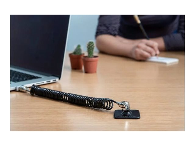 2 têtes de verrouillage de style T-Bar à clé, câble de verrouillage en acier galvanisé enroulé, compatible avec les fentes de sécurité standard.