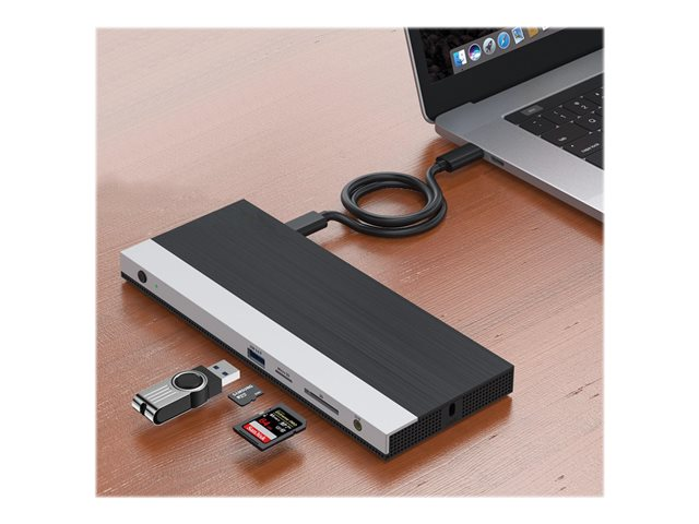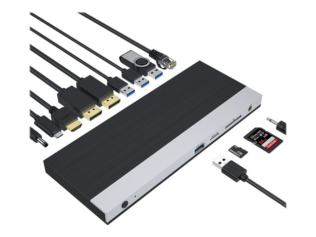Description du produit DLH Energy DY-TU4720 - station d'accueil - USB-C - HDMI, 2 x DP - 1GbE Type de Produit Station d'accueil Interface de station d'accueil USB-C Interfaces vidéo HDMI, 2 x DP Dimensions (LxPxH) 20.7 cm x 8.4 cm x 1.8 cm Poids 378 g Réseaux Gigabit Ethernet Alimentation Adaptateur secteur 130 Watt Alimentation fournie Garantie du fabricant Garantie de 2 ans -