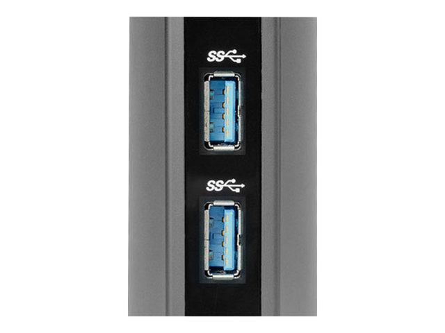 Les ordinateurs portables ultra-minces et les ordinateurs convertibles 2 en 1 comme le Microsoft Surface Pro sont synonymes de grande productivité, de mobilité et d'élégance, mais les ports de connectivité y font généralement défaut. Vous perdez donc du temps à brancher et débrancher vos périphériques. C'est là qu'intervient la station d'accueil universelle USB 3.0 SD3500v. Grâce à elle, transformez un port USB en six ports et accédez à tous vos périphériques : clavier, souris, imprimante, disque dur externe, etc. La sortie vidéo HD double vous permet également d'ajouter deux écrans externes pour augmenter votre productivité. Les deux ports USB 3.0 de cette station autorisent des transferts de données ultra-rapides allant jusqu'à 5 Gbits/s.