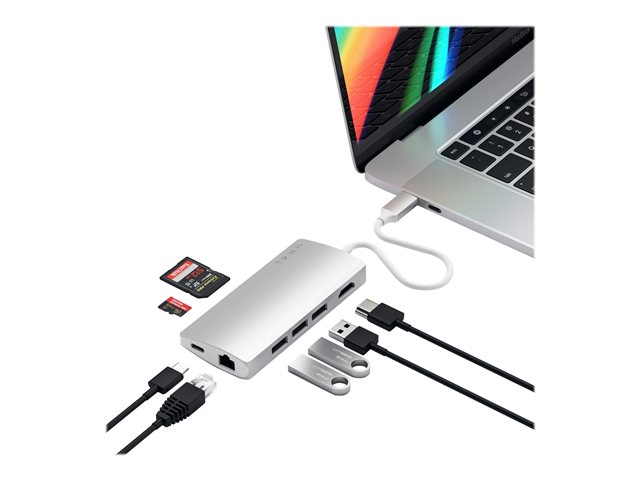 Description du produit Satechi Aluminum Multi-Port Adapter V2 - station d'accueil - USB-C / Thunderbolt 3 - 1GbE Type de Produit Station d'accueil Interface de station d'accueil USB-C / Thunderbolt 3 Dimensions (LxPxH) 10.5 cm x 1.6 cm x 5.08 cm Poids 71.4 g Couleur Argent Réseaux Gigabit Ethernet Garantie du fabricant 1 an de garantie -