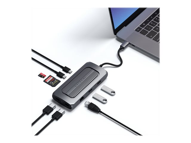 Libérez tout le potentiel de votre configuration M1 avec l'adaptateur MX multiport USB-C de Satechi. Puissant tout en étant ultra-élégant, l'adaptateur propose une double HDMI 4K, un Gigabit Ethernet, une charge USB-C PD, des données USB-C, des données USB-A, des lecteurs de cartes SD et un port jack audio, le tout en n'utilisant qu'un seul port USB-C. Avec ses capacités de double affichage, sa pléthore de ports de données et son design moderne en aluminium, le M1 a enfin trouvé son équivalent.