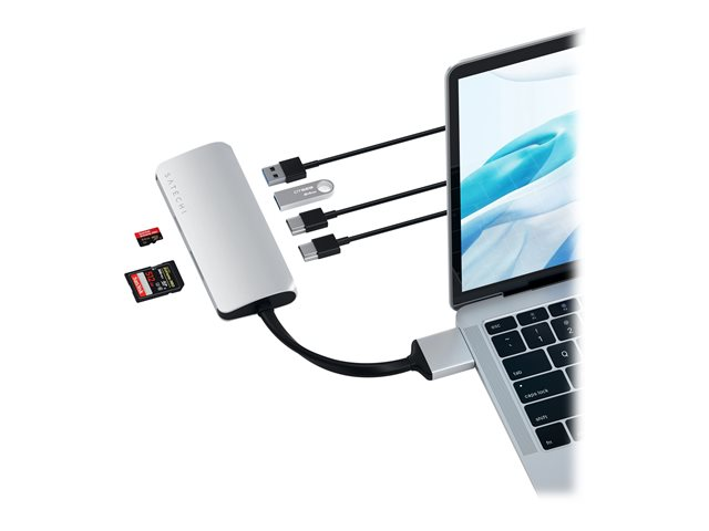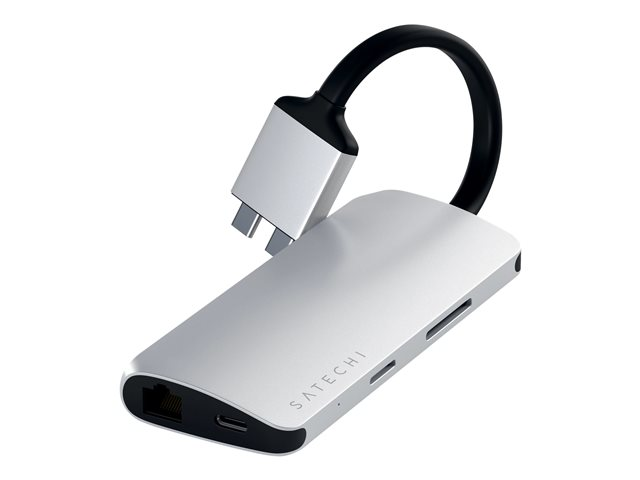 Description du produit Satechi ST-TCDMMAS DUAL MULTIMEDIA ADAPTER - station d'accueil - USB-C - 2 x HDMI - 1GbE Type de Produit Station d'accueil Interface de station d'accueil USB-C Interfaces vidéo 2 x HDMI Dimensions (LxPxH) 12.5 cm x 4.93 cm x 1.91 cm Poids 102 g Couleur Argent Réseaux Gigabit Ethernet Garantie du fabricant 1 an de garantie -