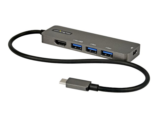 Adaptateur USB-C vers HDMI 2.0b 4K 60Hz (HDR10), Alimentation 100W PT, Hub 4 Ports USB 3.0 - Mini Dock USB Type-C - Câble Intégré 30cm (DKT30CHPD3) - Station d'accueil - USB-C - HDMI