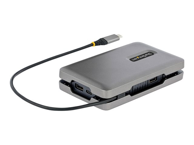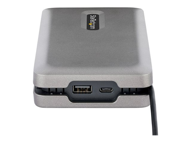 Cet adaptateur/station d'accueil USB-C ; multiport avec DisplayPort ; 1.4 (Alt Mode) et Multi-Stream Transport (MST), dispose de trois options de sortie vidéo (HDMI, VGA et vidéo USB-C) pour prendre en charge un poste de travail à un ou plusieurs moniteurs. Le port vidéo USB-C prend en charge la norme USB 3.2 Gen 2 (10Gbps) avec une puissance de 10W, pour connecter un moniteur USB-C ou un périphérique USB-C. En outre, la station d'accueil est également dotée d'un hub USB-A 3.2 Gen 2 (10 Gbps) à 2 ports, d'un port Gigabit Ethernet et d'une fonction de charge avancée grâce à un port USB Power Delivery (PD) 3.0 pass-through. L'adaptateur multiport se connecte au port USB-C ou Thunderbolt 3/4 ; d'un ordinateur portable, à l'aide du câble USB-C intégré de 25 cm.
