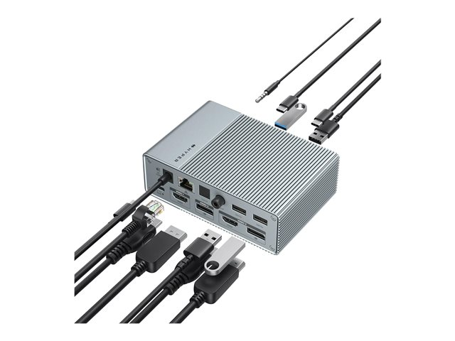 Rencontrez une façon dont les gens maximisent le PC, Chromebook ou MacBook de n'importe quel professionnel, la station d'accueil HyperDrive GEN2 15-en-1 USB-C. Cette station d'accueil USB-C puissante et minimaliste est dotée d'une prise en charge sans pilote du triple affichage étendu pour offrir une solution de connectivité incroyablement polyvalente. En outre, elle dispose de 15 ports intégrés pour tous vos appareils ou périphériques connectés, et vous permet de vous connecter à des écrans étendus avec la flexibilité de 2 ports HDMI ou 2 DisplayPorts qui peuvent être utilisés de manière interchangeable.