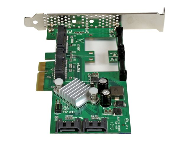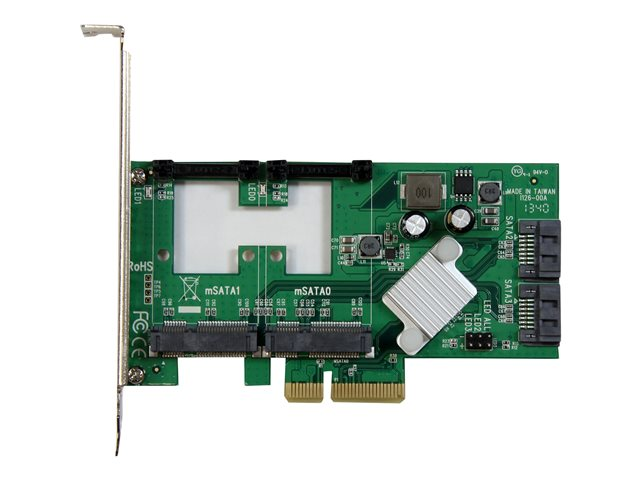 La carte SATA PCI Express PEXMSATA3422 vous permet d'améliorer la vitesse globale et la capacité de stockage de votre ordinateur en vous offrant plusieurs connexions SATA 6 Gb/s, qui permettent de brancher des disques SSD (lecteurs à état solide) haute performance et des disques durs à une matrice HyperDuo. Vous pouvez maintenant ajouter facilement deux slots mSATA et deux ports SATA III à votre ordinateur par le biais d'un seul slot PCI-E x4.