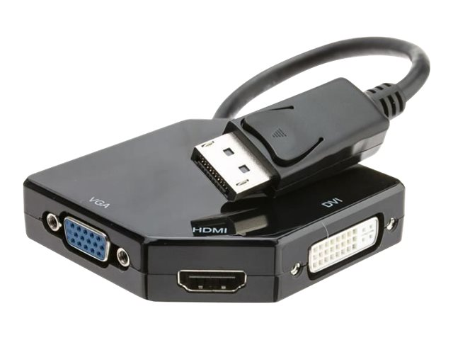 Cet adaptateur 3 en 1 permet le fonctionnement de périphériques dotés d'une connexion HDMI, DVI ou VGA sur le port DisplayPort.