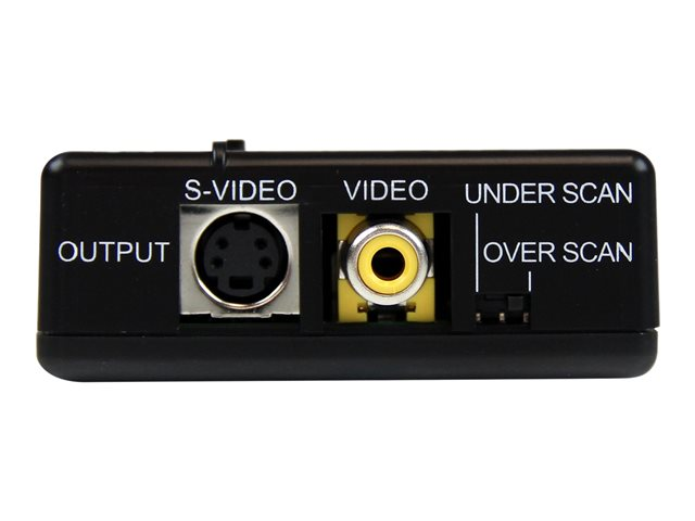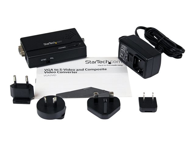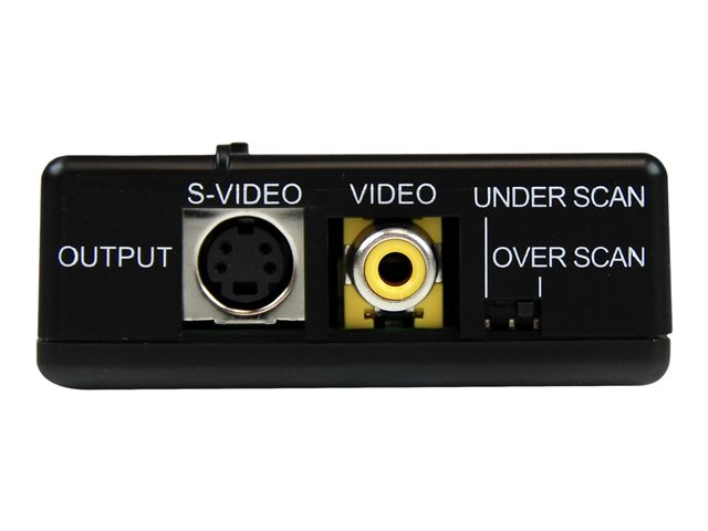 Ce convertisseur haute résolution VGA vers Composite ou S-Video est une solution matériel simple qui vous permet de convertir un signal vidéo VGA/PC en un signal Composite ou S-Video, à des fins d'utilisation avec un moniteur CRT ou un écran plat. Le convertisseur vidéo est une solution idéale pour synchroniser les moniteurs avec des écrans de télévision, etc. ; il offre des modes de fonctionnement en format NTSC ou PAL afin de garantir la comptabilité avec quasiment toutes les configurations.