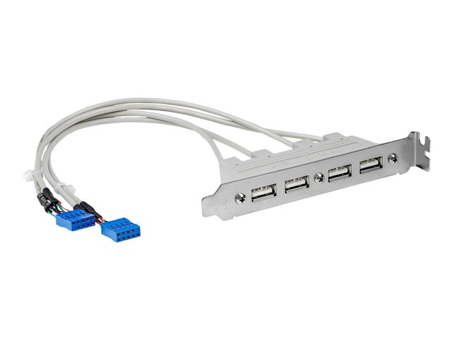 L'adaptateur de plaque USB 2.0 USBPLATE4 4 ports transforme les broches USB de votre carte mère en quatre ports USB A femelles, vous permettant d'ajouter des connexions USB à l'arrière de votre PC.
