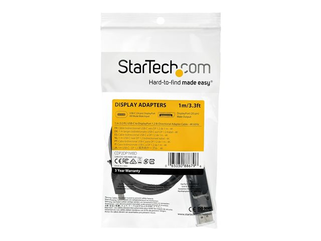 Câble Adaptateur Vidéo Bidirectionnel DP vers USB-C ou USB-C vers DP Réversible - HBR2/HDR - Câble pour Moniteur USB Type C/TB3 (CDP2DP1MBD) - Câble DisplayPort - 24 pin USB-C (M) pour DisplayPort (F) - USB 3.1 / Thunderbolt 3 / DisplayPort 1.2 - 1 m - support 4K, actif - noir