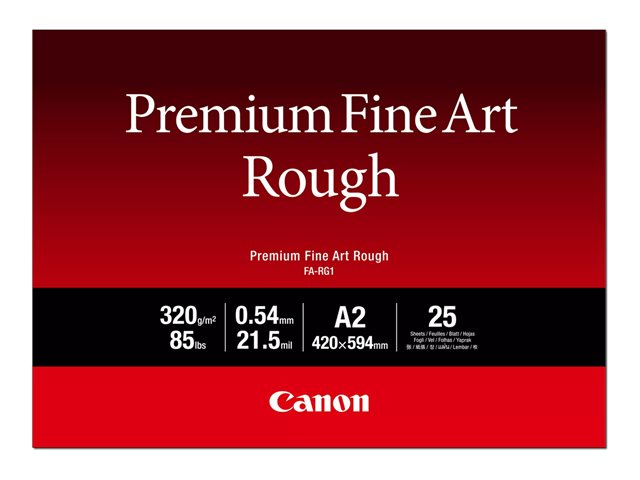 Description du produit Canon Premium FA-RG1 - papier pour beaux arts - brute - 25 feuille(s) - A2 - 320 g/m² Type de Produit Papier pour beaux arts Matériau du produit Coton Finition de surface Brute Taille du support A2 (420 x 594 mm) Technologie d'impression Jet d'encre Grammage 320 g/m² Epaisseur des supports 21,5 millièmes de pouce Nombre inclus 25 feuille(s) Compatible avec imagePROGRAF PRO-1000 -