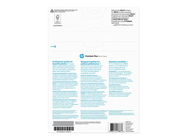 Convient aux imprimantes à jet d'encre et conçu pour les systèmes d'impression HP. Imprimez des photos qui sèchent vite, qui résistent à l'eau et qui durent des générations, grâce aux encres HP authentiques.
