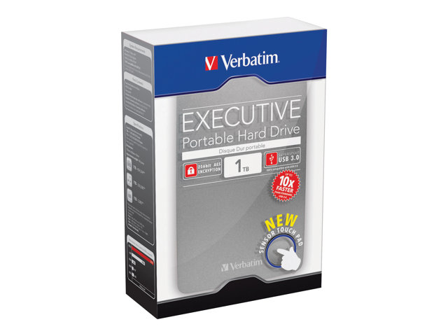 Le disque dur Store 'n' Go Executive offre des vitesses de transfert de données haute vitesse USB 3.0 et le cryptage matériel AES 256 bits pour une sécurité optimale des données. Ce disque présente une fonctionnalité spéciale, un pavé tactile similaire aux écrans tactiles. Le disque dur Executive offre des vitesses de transfert de données extrêmement élevées lorsqu'il est connecté à des systèmes hôtes USB 3.0. Il est également rétrocompatible à 100 % avec les systèmes USB 2.0.