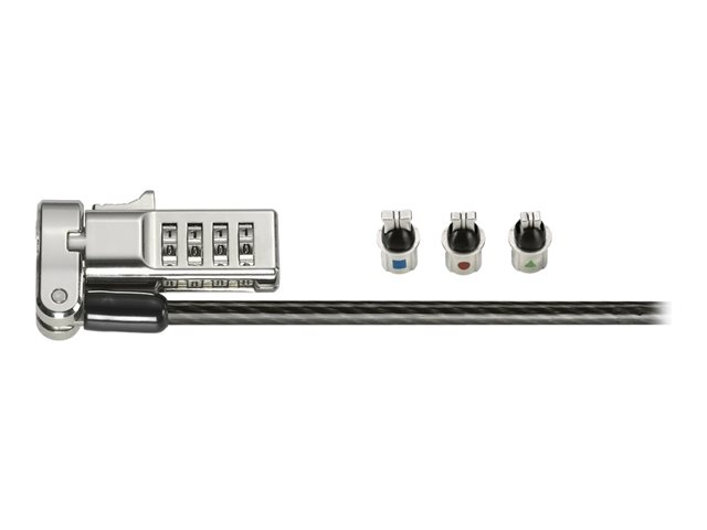 Découvrez notre câble à combinaison qui répond à tous vos besoins. Le câble de sécurité à combinaison universel 3 en 1 est compatible avec différents types d'encoche de sécurité (Kensington standard, nano et Wedge), ce qui en fait une solution parfaitement évolutive. Il offre une forte protection contre les tentatives de vol grâce à un câble en acier carbone et un code réinitialisable à 4 chiffres offrent 10 000 combinaisons possibles. Le câble inclut également le programme Register & Retrieve permettant une récupération simple, rapide et sûre des combinaisons, ainsi qu'une garantie de cinq ans par Kensington, inventeur et leader mondial des câbles de sécurité pour ordinateurs portables. La résistance, l'endurance physique et la résilience mécanique de tous les câbles Kensington sont testées et vérifiées.