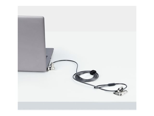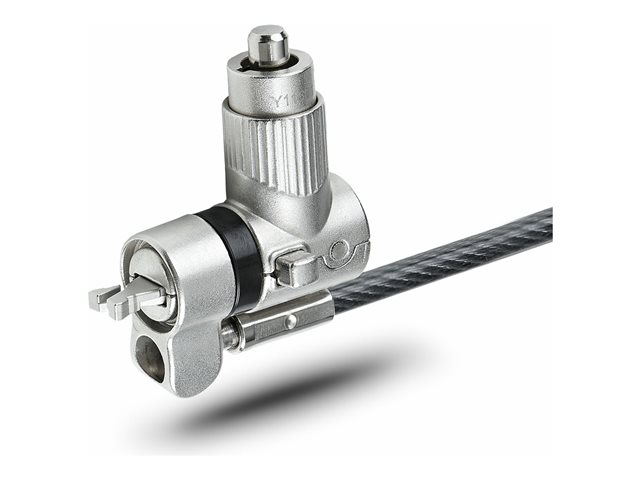 Dissuadez le vol d'un ordinateur portable, d'une station d'accueil ou d'autres périphériques à l'aide de ce verrou de câble de sécurité universel. Le verrou universel pour ordinateur portable est une solution polyvalente compatible avec Noble Wedge, K-Slot (T-Bar) ou Nano, offrant flexibilité et commodité. Sa fonction de réglage à la volée de la pointe de verrouillage permet une compatibilité sans effort avec les différents types de fentes de sécurité. Le câble de sécurité en acier résistant aux coupures mesure 2 m de long et 4,4 mm d'épaisseur, ce qui lui confère portée et durabilité. Avec le verrou pour ordinateur portable 3-en-1, protégez vos précieux appareils où que vous alliez.