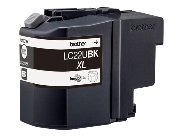 Description du produit Brother LC22UBK - XL - noir - original - cartouche d'encre Type de Produit Cartouche d'encre Technologie d'impression Jet d'encre Couleur d'impression Noir Rendement de la cartouche XL Rendement Jusqu'à 2400 pages ISO/IEC 24711 Compatible avec Brother DCP-J785DW, DCP-J785DWXL, MFC-J985DW; INKvestment Work Smart MFC-J985DW, MFC-J985DW XL -
