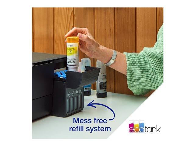 Économisez jusqu'à 90 % sur le coût de l'encre avec les imprimantes multifonction Epson EcoTank sans cartouches. Fournie avec des bouteilles d'encre haute capacité, ses réservoirs d'encre intégrés sont faciles à remplir grâce aux bouteilles d'encre spécialement conçues. Sans aucune cartouche à remplacer et dotée de fonctionnalités de connectivité flexibles, cette imprimante multifonction est idéale pour les personnes qui recherchent des impressions de haute qualité et un coût par page très bas.