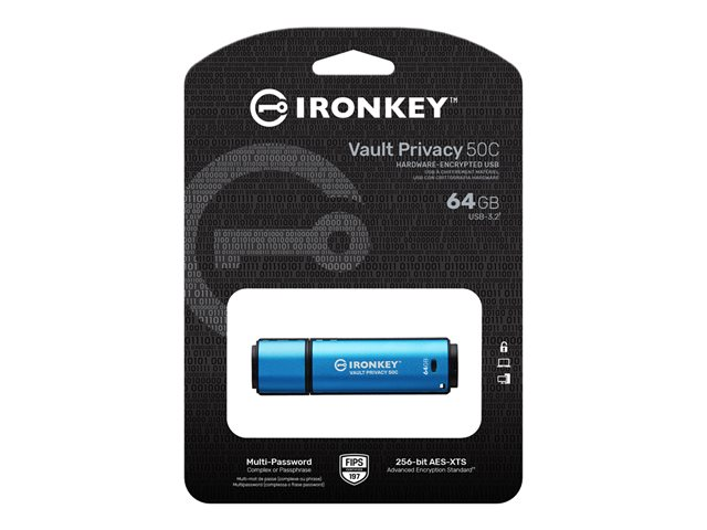 Les clés USB de la gamme Kingston IronKey Vault Privacy 50 sont des clés USB qui offrent une sécurité de niveau entreprise grâce au chiffrement matériel AES 256 bits certifié FIPS 197 en mode XTS. Elle offre également une protection contre les BadUSB avec un firmware signé numériquement et contre les attaques par force brute visant les mots de passe. La VP50 a fait l'objet d'un test d'intrusion (Pen Tested) pour une sécurité de niveau entreprise. Parce qu'il s'agit d'un stockage chiffré sous le contrôle physique de l'utilisateur, la gamme VP50 est idéale pour l'utilisation d'Internet et des services Cloud pour protéger les données.