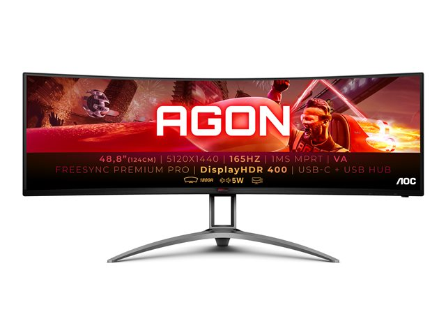 Doublez l'immersion dans le jeu avec le moniteur incurvé AG493UCX2 : grâce au vaste espace de l'écran de 49? (32:9) et à une fabuleuse résolution Dual-QHD 5k, l'image est aiguisée comme le fil d'un rasoir, quel que soit l'angle de vision. Une fantastique fréquence de rafraîchissement à 165 Hz et FreeSync Premium Pro assurent les images fluides pour encore plus de réalisme.