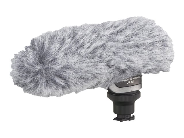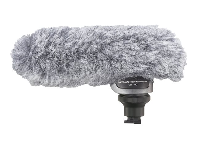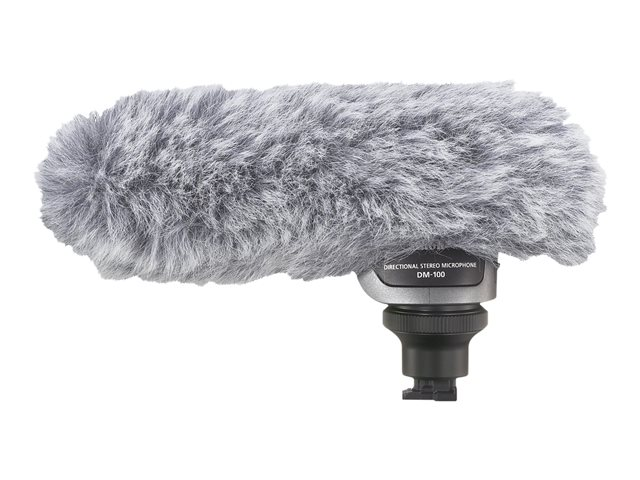 Le microphone DM-100 est un microphone stéréo directionnel qui se fixe au porte-accessoires perfectionné. Obtenez une qualité audio quasi professionnelle pour vos films grâce ? ce microphone stéréo unidirectionnel. Vous pouvez choisir les modes unidirectionnel ou omnidirectionnel. Puisque le microphone est alimenté par la source d'alimentation du caméscope, aucun câble n'est nécessaire.