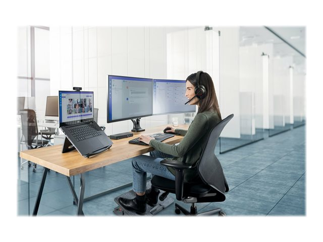 Le micro-casque USB-C H2000 de Kensington offre une expérience immersive et concentrée, une technologie audio exceptionnelle et des fonctionnalités de productivité haut de gamme via une conception supra-auriculaire ergonomique. Le H2000 offrent des écouteurs à mémoire de forme avec gel refroidissant recouverts d'un tissu respirant à transfert de chaleur pour un confort longue durée, des micros à suppression du bruit qui éliminent les bruits parasites, des témoins lumineux " ne pas déranger " et de désactivation du son pour réduire les distractions, des commandes intégrées et un effet vocal (Sidetone) optimisant les appels. Les haut-parleurs dynamiques de 40 mm en néodyme vous offrent une expérience audio exceptionnelle pour les appels et la musique. Un long câble USB-C anti-nœud en nylon tressé de 1,80 m vous offre une grande liberté de mouvement en cas d'appel prolongé. Le micro-casque H2000 fait partie de l'écosystème de visioconférence professionnelle de Kensington. Vous bénéficiez ainsi d'une expérience intégrée qui vous permet de consacrer plus de temps à accroître votre productivité.