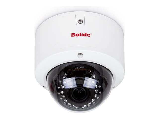 Description du produit Bolide - caméra de surveillance - dôme Type de périphérique Caméra de surveillance - fixé - dôme - à l'épreuve du vandalisme / résistant aux intempéries Poids 589.67 g Caméra Couleur - Jour et nuit - NTSC Résolution maximale 2560 x 1920 Type de capteur optique CMOS - 1/2.7" - 5 MP Éclairage minimum 0.1 lux - couleur