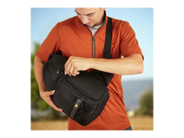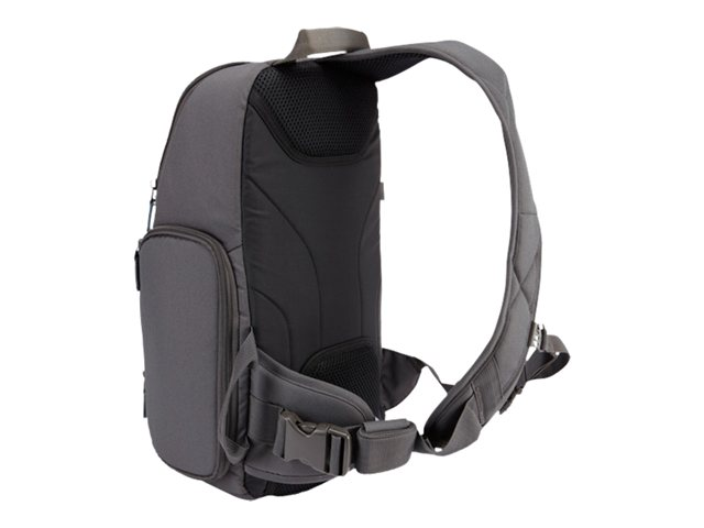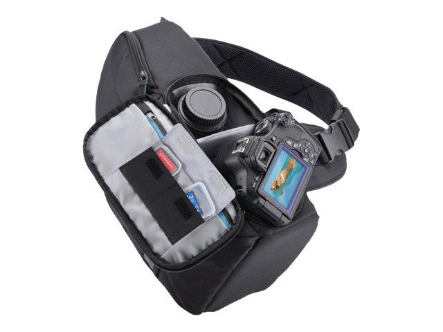 Idéal pour les prises de vue prolongées, notre sac bandoulière ultra-compact pour appareil photo reflex numérique transporte votre appareil avec objectif monté ainsi que d'autres accessoires supplémentaires. Vous accédez facilement à votre matériel en inclinant le sac vers l'avant.