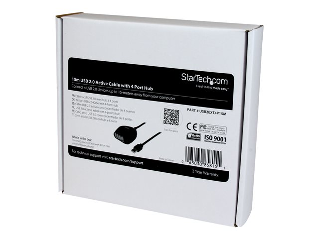 Le câble USB2EXT4P15M prend en charge la totalité de la bande passante USB 2.0 de 480 Mb/s et bénéficie de la garantie StarTech.com de 2 ans.