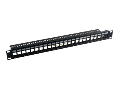 Description du produit MCL Samar PB-UNI6A/24BN - tableau de connexions - 1U Type de produit Tableau de connexions - CAT 6a - RJ-45 X 24 Couleur Noir Nombre de ports 24 ports Hauteur (unités de rack) 1U -