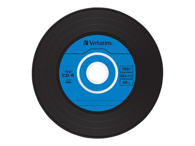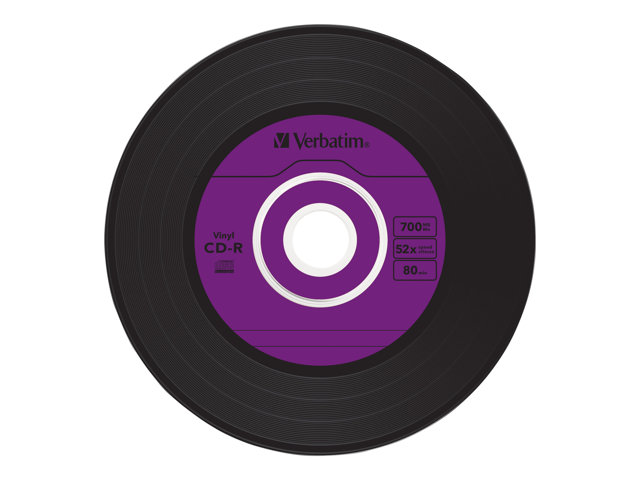 Description du produit Verbatim Data Vinyl - CD-R x 10 - 700 Mo - support de stockage Type Support de stockage - CD-R Nombre de supports inclus 10 Capacité normale 700 Mo Vitesse d'écriture 52x (maximum) Fonctions Revêtement Super AZO Type d'emballage Boîtier CD étroit -