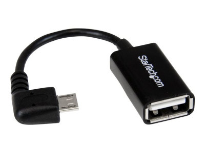 StarTech.com Câble adaptateur Micro USB à angle droit vers USB Host OTG de 12cm - Adaptateur USB On-The-Go coudé - Mâle / Femelle - Adaptateur USB - USB (F) pour Micro-USB de type B (M) - USB 2.0 OTG - 12.7 cm - connecteur à angle droit - noir UUSBOTGRA