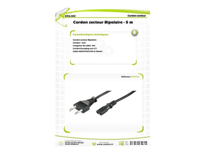 Neklan Bipolar - Câble d'alimentation - Europlug (M) pour power IEC 60320 C7 - 5 m - noir