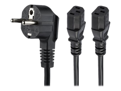 StarTech.com Câble d'alimentation PC - Cordon secteur en Y Schuko vers C13 de 2 m - Prise européenne vers 2x C13 - Câble d'alimentation - power CEE 7/7 (M) pour power IEC 60320 C13 - CA 250 V - 10 A - 2 m - noir