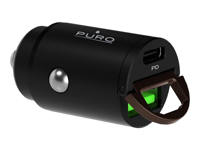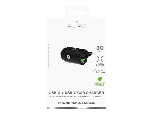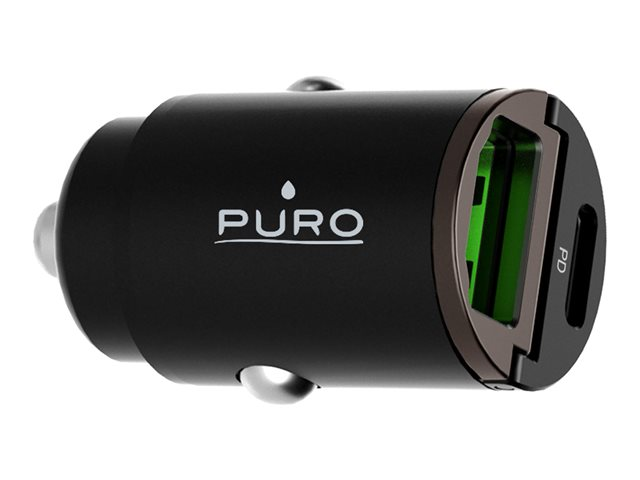 Puro - Adaptateur d'alimentation pour voiture - 30 Watt - 3 A - Fast Charge, PD - 2 connecteurs de sortie (USB, 24 pin USB-C) - noir