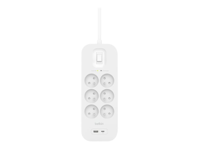 Belkin Connect - Protection contre les surtensions - avec ports USB-C et USB-A - AC - connecteurs de sortie : 6 - 2 m cordon