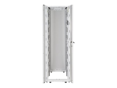 Armoires informatiques riches en fonctionnalités optimisées pour l'architecture en rangées InfraStruxure, la gestion des câbles, la distribution d'alimentation ainsi qu'une circulation d'air optimale.