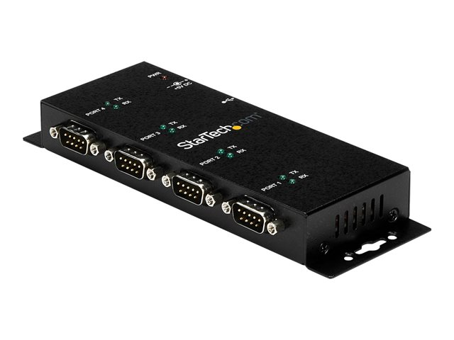 StarTech.com Hub adaptateur USB vers série DB9 RS232 4 ports – Montage sur rail DIN industriel et mural - Adaptateur série - USB 2.0 - RS-232 x 4 - noir