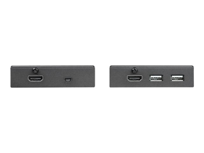 Ce kit d'extendeurs HDMI vous permet de transmettre votre source vidéo HD 1080p vers votre écran HDMI distant à une distance pouvant aller jusqu'à 50 m au moyen de câbles CAT6 blindés. Cet extendeur comporte un hub USB 2.0 à 4 ports intégré, qui vous permet aussi de connecter quatre périphériques USB distants sur le site de votre écran.