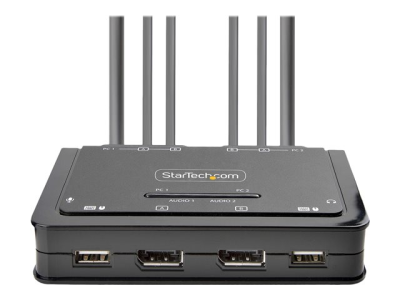 StarTech.com 2-Port Dual-Monitor DisplayPort Cable KVM Switch, 4K 60Hz, Compact KVM with 5ft/1.5m USB-A/DisplayPort/Audio Integrated Cables, Bus Powered - Remote Push Button/Hotkey Switching (C2-DD46-UA2-CBL-KVM) - Commutateur écran-clavier-souris/audio/USB - compact - 2 x KVM / audio / USB - 1 utilisateur local - de bureau C2-DD46-UA2-CBL-KVM