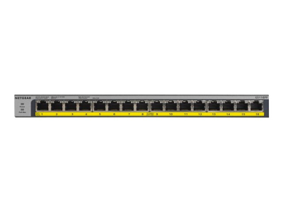 NETGEAR GS116LP - Commutateur - 16 x 10/100/1000 (PoE+) - de bureau, Montable sur rack, fixation murale - PoE+ (76 W) - Tension CC